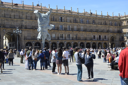 Molalarla Üç saat süren yolculuk sonunda Kum rengi yapılarla bezenmiş Altın şehir olarak bilinen Kristof Kolomb’un hocalık yaptığı, Cervantes’in de öğrencisi olduğu Avrupa’nın en eski üniversitesi Salamanca Üniversitesinin bulunduğu Salamanca şehrine ulaştık. Kent kum şehri unvanı tarihi yapıların tamamının kum taşından yapılmış olması ve akşam güneşi altında şehrin kum sarısı bir renge bürünüyor olması. Kentin orta yerinde Plaza Campillo’daki yeraltı otoparkına arabayı park edip şehrin sokaklarına kendimizi attık.