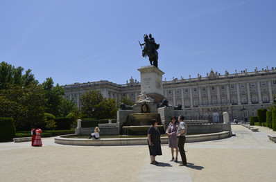 Palacio Real : İspanya Kraliyet Ailesinin Sarayı Plaza Oriente’nin karşısında Kraliyet Tiyatrosunun yanında yer alıyor, kentin en görkemli yapılarından biri olan bina Neoklasik tarz mimariye sahip, 3418 odası bulunan sarayı hakkını vererek gezmek için bir tam gün ayırmak gerekiyormuş ne yazık ki rehberimizin ve bizim zamanımız kısıtlı ve girişin önünde uzun bir kuyruk var. Binanın arkasındaki görkemli “Sabatini Bahçeleri” ve Romantik “Campo del Moro Bahçelerini” görmeyi çok istiyorduk ama bir sonraki Madrid seyahatimize kaldı.