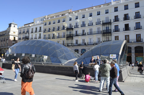 Puerta Del Sol (Güneşin Kapısı): Kentin en hareketli ve ünlü meydanı, yarım daire formunda düzenlenmiş meydana metro, otobüs ile rahatlıkla ulaşılabiliyor, buradan Plaza Mayor, Kraliyet Sarayı, Retiro Park ve Tiyatro Meydanı yürüme mesafesinde. Çevrede çok sayıda kaliteli restoran, cafe-bar, mağaza ve alışveriş merkezi var. Meydanın ortasındaki heykel kentin gelişmesine büyük katkılar sağlayan Kral III.Charles’a ait, üzerinde saat kulesi bulunan binanın önünde ise İspanya’nın önemli 6 yolunun başlangıç noktası ve İspanya’nın sembolik merkezi olarak kabul edilen sıfır taşı (zero stone) duruyor, doğu kenarındaki 20 tonluk ağaçtan meyve toplayan ayı heykeli ise kentin simgesi olmuş. Saat kulesinin solundan Calle De Caritas’a girdiğimizde soldaki ilk sokak Calle De Cadiz üzerindeki Taberna Malaspina’ya oturduk lezzetli yemekleri, uygun fiyatları ve ilginç iç mekanı ile meydan çevresinde uygun fiyata yemek yenecek güzel mekanlardan biri, özellikle kızarmış tavuk çok lezzetliydi.