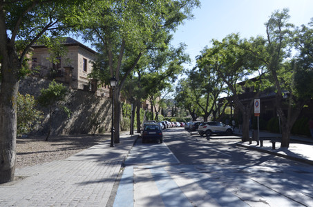 Madrid-Toledo arası İber yarımadasının yüksek platosundaki bozkırların ortasından gidiliyor. Gündüzleri yakıcı sıcak olan hava geceleri çok soğuk oluyor, gelenlere kat kat giyinmesini tavsiye ediyorum. Madrid’ten güneşli ve serin bir sabahta yola çıktık otoyol yerine parasız yoldan gidip 1 saatte Toledo’ya vardık, Toledo ressam El Greco ve Cervantes'in ünlü karakteri Don Kişot'un şehrine girer girmez insanı büyülüyor, arabayı Cuesta de los Capuchinos üzerindeki kapalı otopark Garage Alcasar'a bıraktık bir süre Alcasar önündeki terastan Tajo Nehri vadisinin karşı kıyısındaki tepe üzerinde bulunan Askeri piyade okulunu seyrettik.