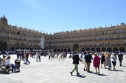 Plaza Mayor; Calle Toro yönündeki kemerli kapıdan girdiğimiz kentin merkezindeki meydanın inşasına 1729 yılında başlanmış ve 1755 yılında tamamlanmış. Kral Felipe V meydanı Churriguiera ailesine boğa güreşleri düzenlenmesi amacıyla tasarlatmış ve 19.yüzyılın ortalarına kadar da bu amaçla kullanılmış. Barok tarzında ve kumtaşından yapılan meydana Andreas Garcia de Quinones Belediye binasını eklemiş, 1988 yılında ise Dünya Mirası listesine alınarak günümüzdeki haline ulaşmış. Meydanın hiçbir kenarı aynı uzunlukta olmamasına rağmen yaklaşık 70x70m boyutlarında olup 6 girişe sahiptir ayrıca 88 kemer ve 247 balkon bulunan meydan zemin katları revaklı 3 katlı binalarla çevrelenmiştir.